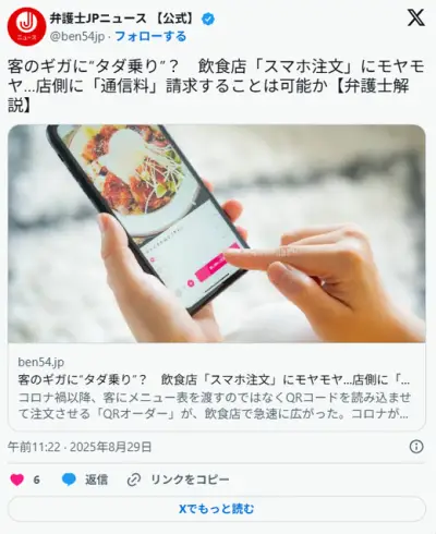 【俺のギガ】客のギガに“タダ乗り”? 飲食店「スマホ注文」にモヤモヤ…店側に「通信料」請求することは可能か【弁護士解説】