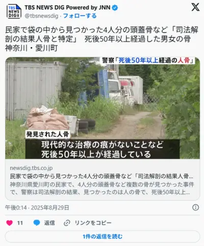 神奈川県警「麻袋に入った人骨は死後50年以上経過したもの。よって事件性なし!終了!」