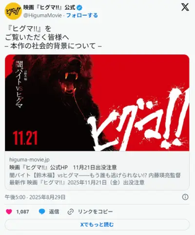 映画『ヒグマ!!』公開前に“異例”の声明 社会的背景を踏まえ制作意図説明
