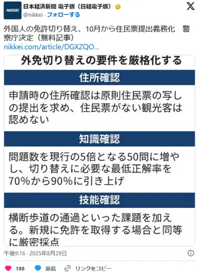 外国人の免許切り替え、10月から住民票提出義務化 警察庁決定
