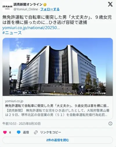 男「無事かーー?」 女児(首を横に振る) 男「よーし、無事やな!いくわ!」 轢き逃げ無免許男を逮捕