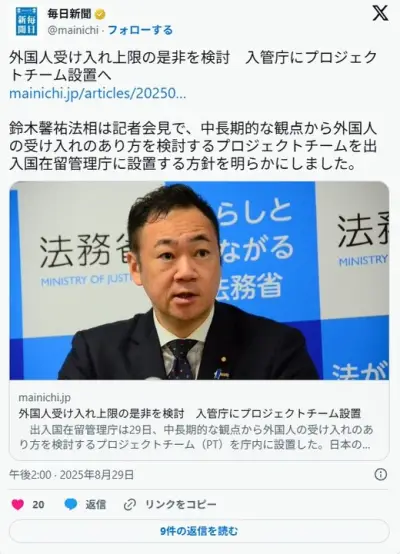 参政党代表、日本は元々移民の国だとしてOECD加盟国と同じ全人口の10%まで移民受け入れ可能と表明