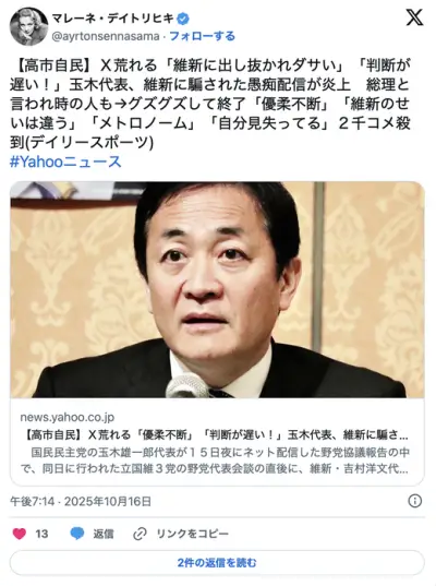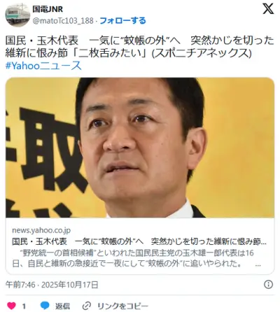 国民 玉木ネット上で非難の嵐「ダサい」「ヘタレ」「優柔不断」「グズ」「白ブリーフはいてそう」
