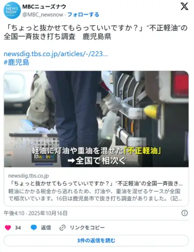 「ちょっと抜かせてもらっていいですか?」“不正軽油”の全国一斉抜き打ち調査 鹿児島…