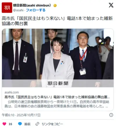 高市氏「国民民主はもう来ない」電話1本で始まった維新協議の舞台裏