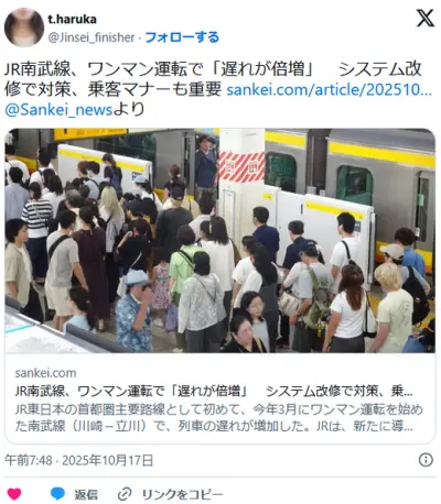 【鉄道】JR南武線、ワンマン運転で「遅れが倍増」 システム改修で対策、乗客マナーも重要
