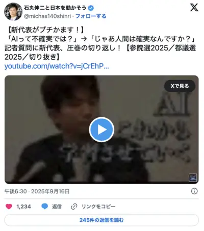 【論破祭り】記者「AIって不確実では?」 再生の道代表「じゃあ人間は確実なんですか?」