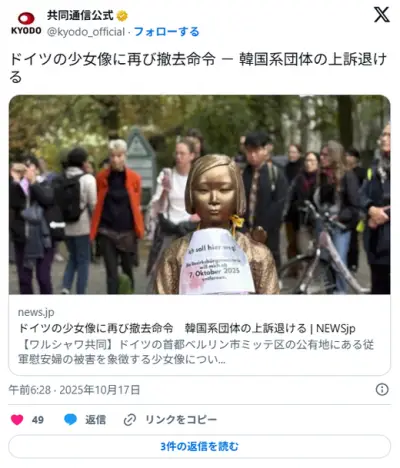 <#`Д´>「上訴ニダ!!」 →ドイツ裁判所「黙れ朝鮮人!売春婦像は撤去だ」