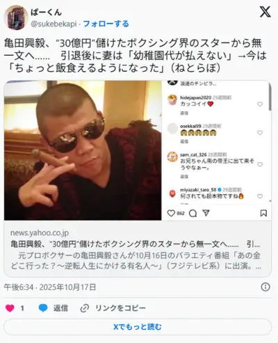 3階級制覇達成の亀田興毅さん“30億円”稼ぐも5年で無一文に