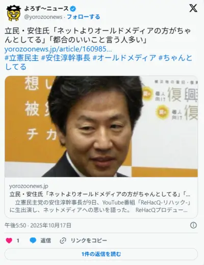 立憲・安住氏「オールドメディアの方がちゃんとしてる」