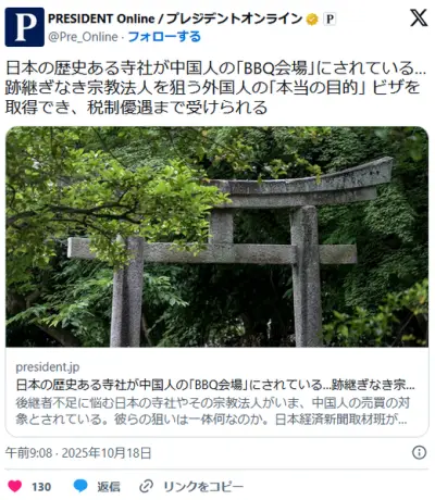 日本の歴史ある寺社が中国人の「BBQ会場」にされている