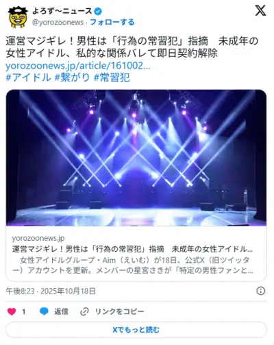 アイドルグループ・Aimmメンバー、特定の男性ファンと関係持ち契約解除 運営マジギレ 男性には「法的措置検討」