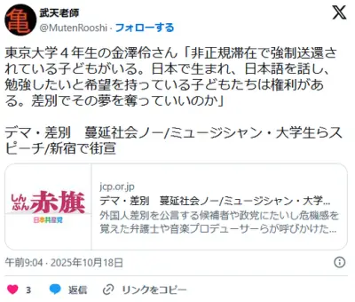 東大生「日本で生まれ日本語を話し勉強したいと希望を持つ子どもたちの権利や夢を差別で奪っていいのか