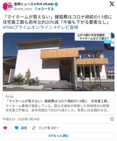「マイホームが買えない」 建築費はコロナ禍前の1.5倍に 家が高くて前年比20%減