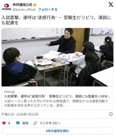 入試直撃の衆院選、高市一派の大音量演説に受験生絶望「迷惑行為。何が愛国?」「何年も勉強したのに…」