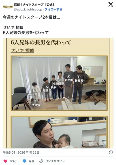 探偵!ナイトスクープが波紋、小学生に長男にすべてを押し付ける親