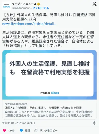 高市政権、外国人の生活保護対象見直し 東京新聞記者「苦しい思いをしてる外国人はたくさんいるのに」