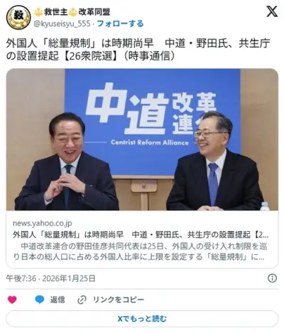 【衆院選】外国人「総量規制」は時期尚早 中道・野田氏、「多文化共生庁」の設置提起