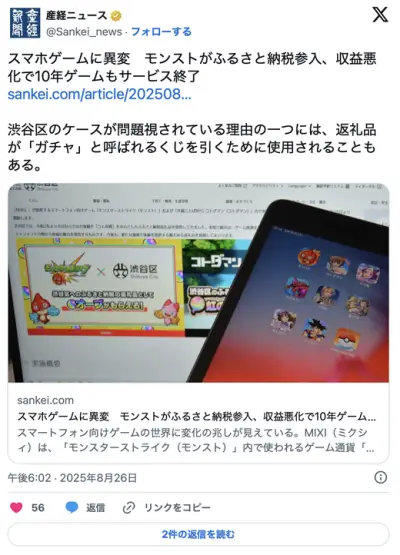 スマホゲームに異変 モンストがふるさと納税参入、収益悪化で10年ゲームもサービス終了