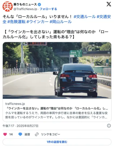 ウインカーを出さないドライバーの心理 「運転が下手だと思われる」「曲がることぐらいわかるでしょ」