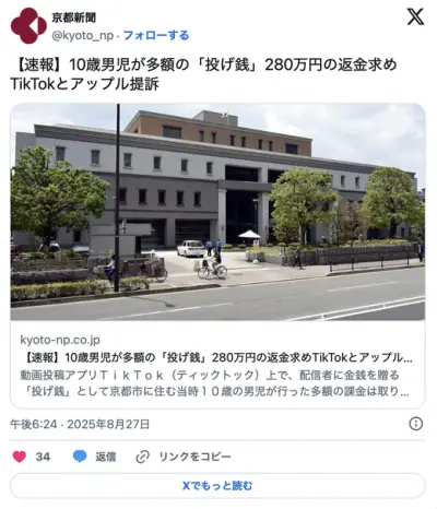 10歳男児が多額の「投げ銭」280万円の返金求めTikTokとアップル提訴
