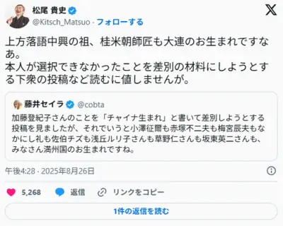 加藤登紀子の出生地めぐるSNS投稿 松尾貴史らが「差別」と批判……町山智浩「日本はもうどうかしてる」