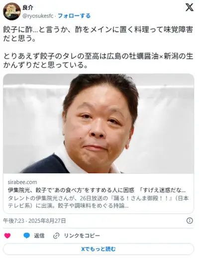 伊集院光、餃子のタレで“酢コショウ”をすすめる人に困惑 「『騙されたと思って』って…すげえ迷惑だなって」