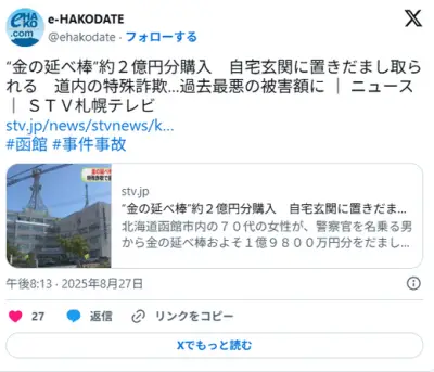 “金の延べ棒”約2億円分購入 自宅玄関に置きだまし取られる 道内の特殊詐欺…過去最悪の被害額に 北海道