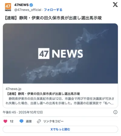 田久保市長「失職したら出直し選に出馬する。市民に信を問う」