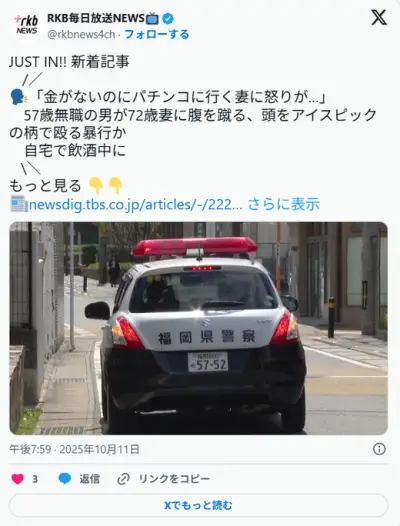 【福岡】「金がないのにパチンコに行く妻に怒りが…」57歳無職男が72歳妻に腹を蹴る、頭をアイスピックの柄で殴る暴行か 自宅で飲酒中に