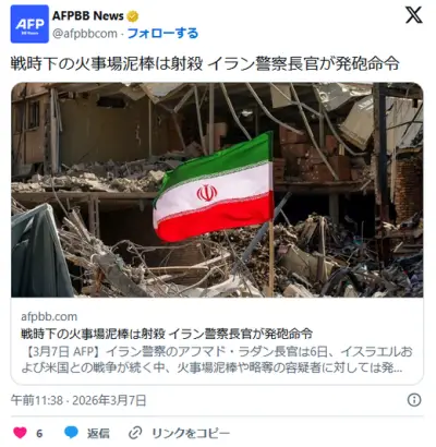 イラン国防軍「反体制派は容赦なく射殺する」イラン警察「窃盗犯も容赦なく射殺する」