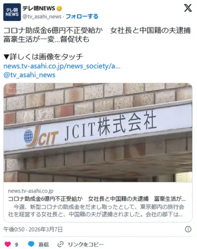 コロナ助成金6億円不正受給か 女社長と中国籍の夫逮捕 富豪生活が一変…督促状も
