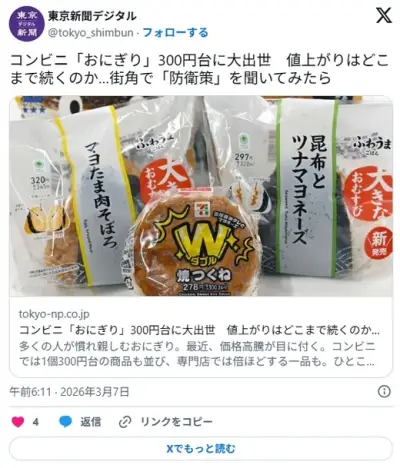 コンビニ「おにぎり」300円台に大出世 値上がりはどこまで続くのか 街角で「防衛策」を聞いてみた