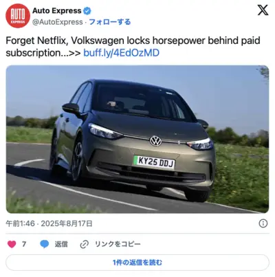 【悲報】フォルクスワーゲン「お車のフル馬力をアンロックするには、サブスク(3,3000円/年)に加入してください」