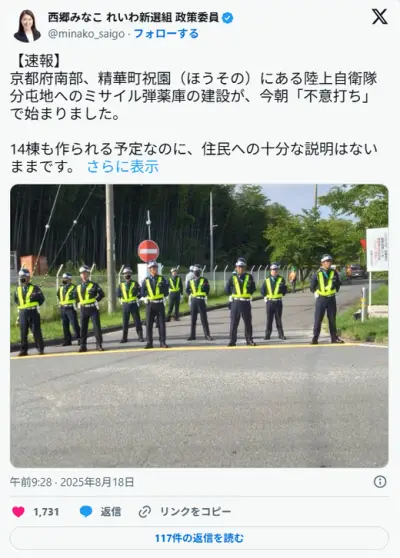 【画像】 陸上自衛隊が京都に弾薬庫を設置 → れいわ新選組「不意打ちだ」