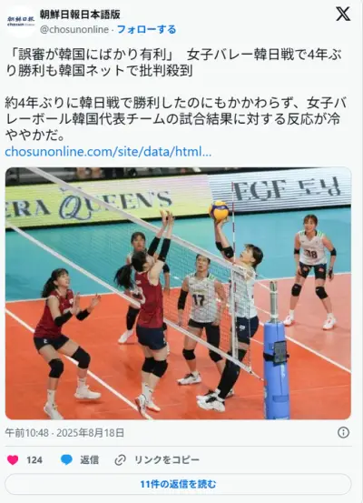 女子バレー日韓戦、韓国が勝利し大喜び…せず韓国から非難殺到「不公平!韓国有利の誤審が多過ぎる!」