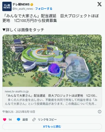「みんなで大家さん」配当遅延 巨大プロジェクトほぼ更地 1口100万円から投資募集