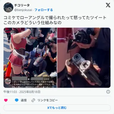【画像】コスプレイヤーさん、ローアングル撮影カメコにブチギレwwwwwwwwww