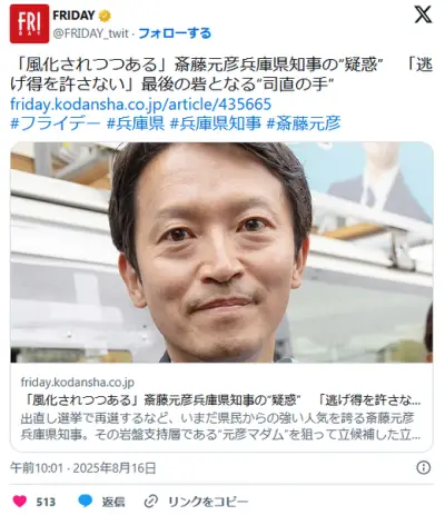 記者「おかしい…我々が必死に斎藤元彦を攻撃してるのに県民が飽きてきている…」