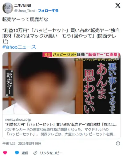 利益10万円「ハッピーセット」買い占め“転売ヤー”独自取材「あれはマクドが悪い もう1回やって」