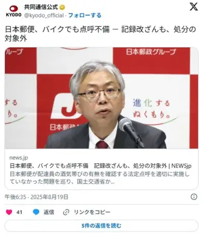 【日本郵便】バイクでも点呼不備 記録改ざんも、処分の対象外