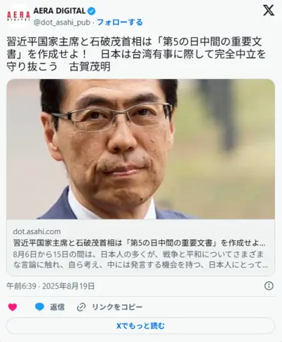 【AERA】古賀茂明氏「日中間は"何がなんでも戦争しない"ことを約束した重要文書を作成せよ」