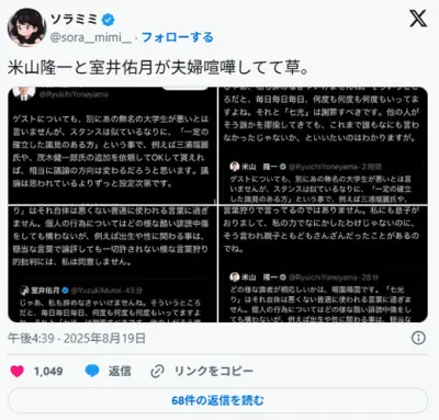 【悲報】論客米山隆一、Xで夫婦喧嘩wwwwwwwwwwww