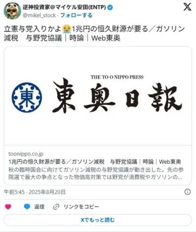 ガソリン減税、1兆円の財源必要 石破首相・立憲野田氏「財源は死に物狂いで確保しなければならない」「本当に死に物狂いで」