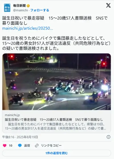 【千葉】「みんなで走れて楽しかった」 バイクでバースデー集団暴走 男女57人を書類送検 SNSで参加者募る