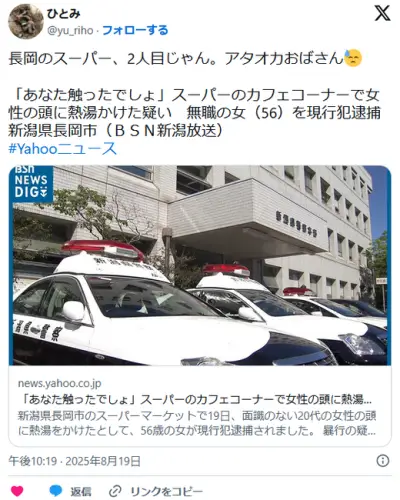 スーパーのカフェコーナーで女性の頭に熱湯かけた疑い 無職の女(56)を現行犯逮捕