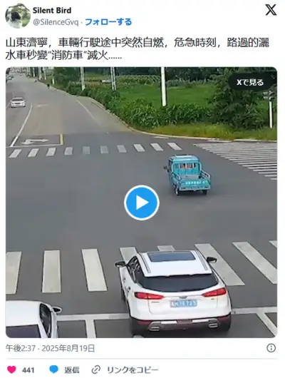 中国車、走行中に突然発火🔥🔥🚗🔥