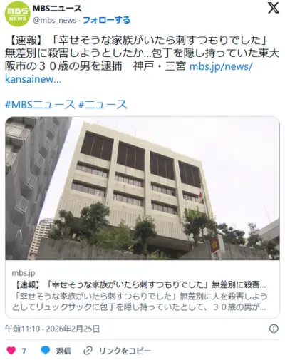 包丁を隠し持ち、無差別に人を殺害しようとした30歳の男…2kmの距離を徒歩で移動→疲れ果てて倒れ、意識のない状態で見つかる→逮捕