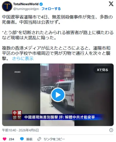 経済崩壊の中国にて、切断された頭部が路上に横たわり現場は大混乱