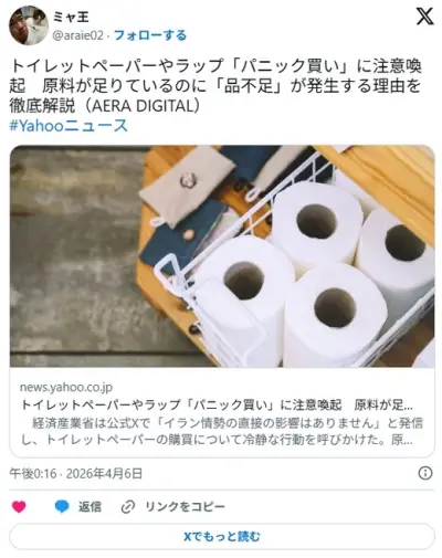 【🧻】トイレットペーパーやラップ「パニック買い」に注意喚起 原料が足りているのに「品不足」が発生する理由を徹底解説